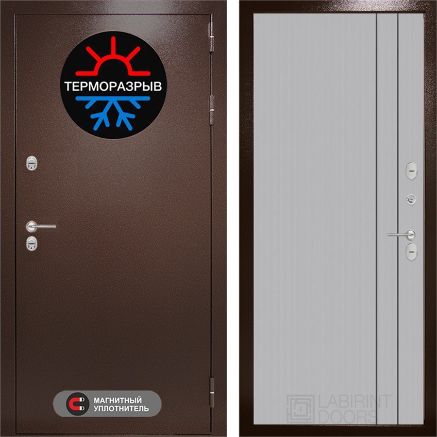 Входная дверь Термо Магнит 10 (Антик медный / Серый рельеф софт) для частного загородного дома и дачи