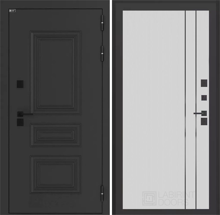 Комплектация уличной входной двери с терморазрывом Аляска Термо Лайт 10 - Белый рельеф софт, черный молдинг: