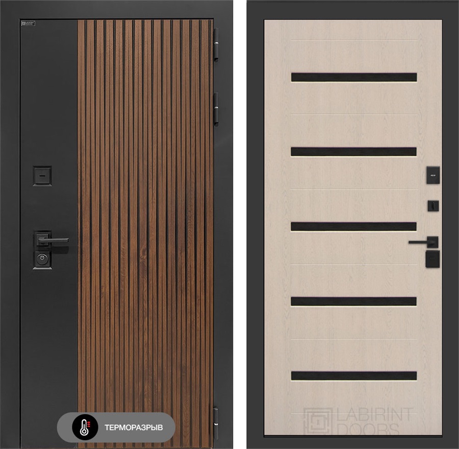 Комплектация входной двери с терморазрывом Айслаб №01 - Беленый дуб, стекло черное: