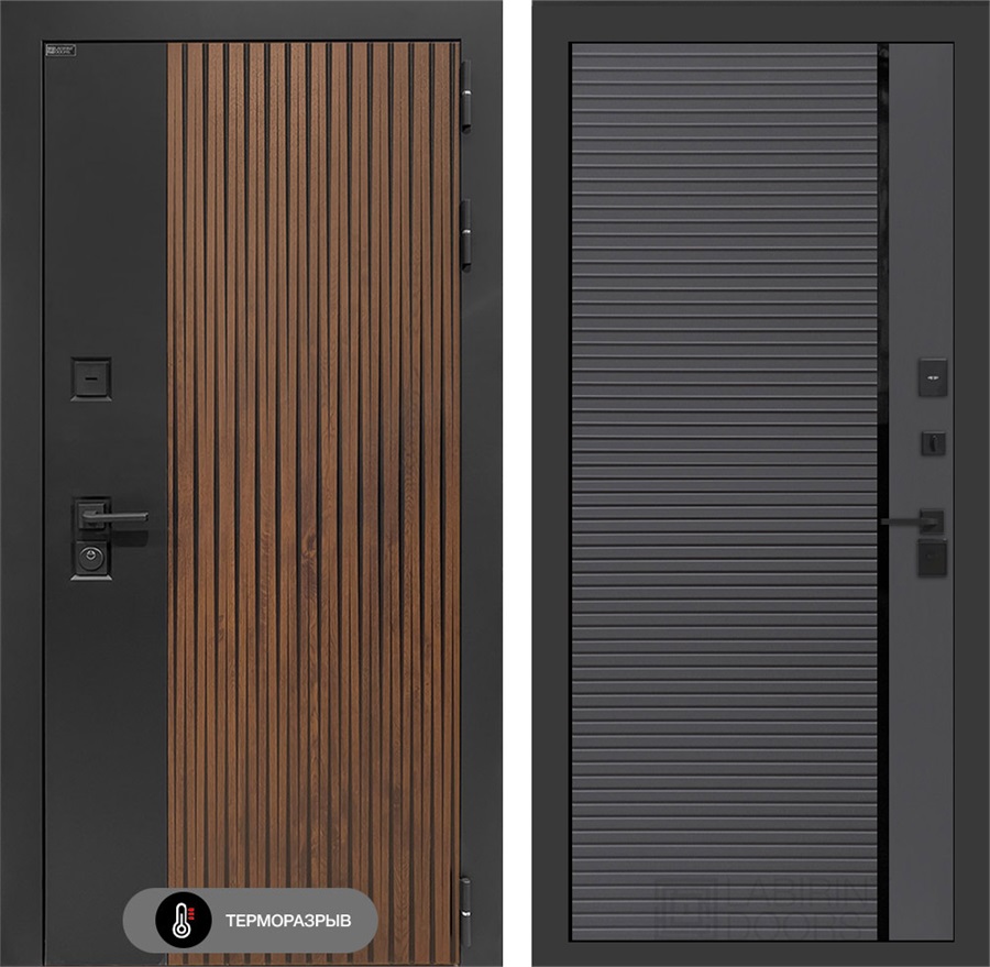 Комплектация входной двери с терморазрывом Айслаб №22 - Графит софт, черная вставка: