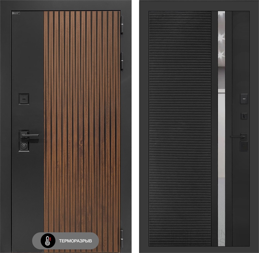 Комплектация входной двери с терморазрывом Айслаб №31 - Черный кварц, зеркальная вставка с тонировкой: