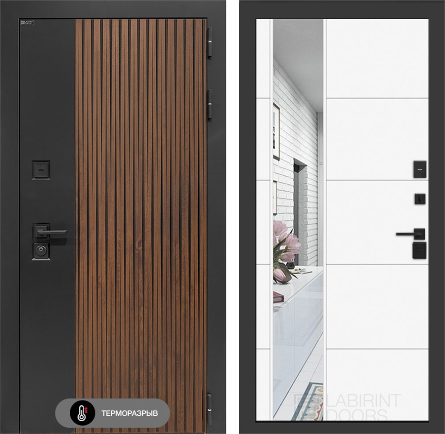 Комплектация входной двери с терморазрывом Айслаб с зеркалом 19 - Белый софт:
