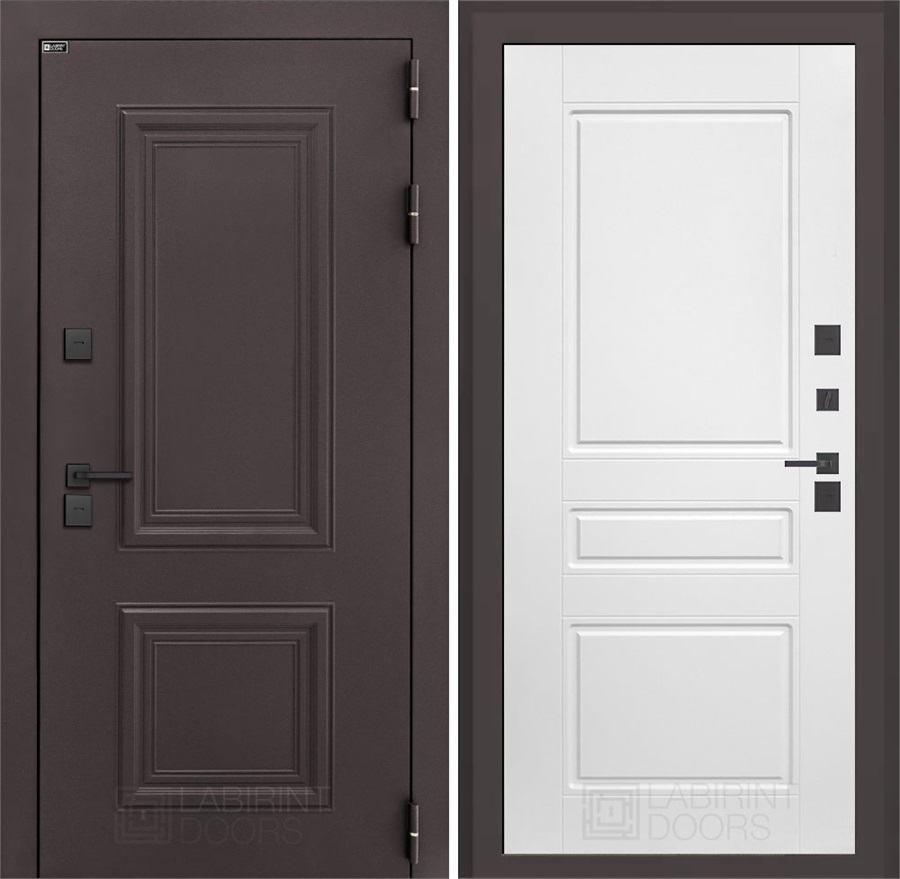 Входная дверь Полярис Термо Лайт №03 (Муар коричневый / Белый софт) для частного загородного дома и дачи