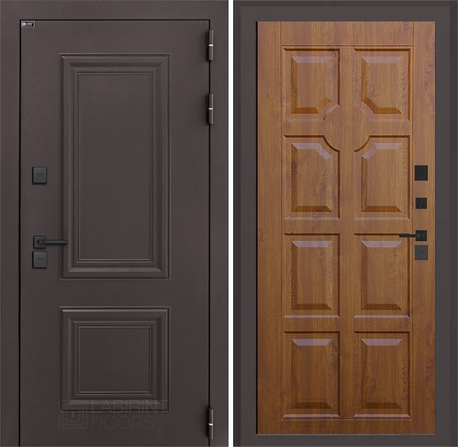 Входная дверь Полярис Термо Лайт №17 (Муар коричневый / Золотой дуб) для частного загородного дома и дачи