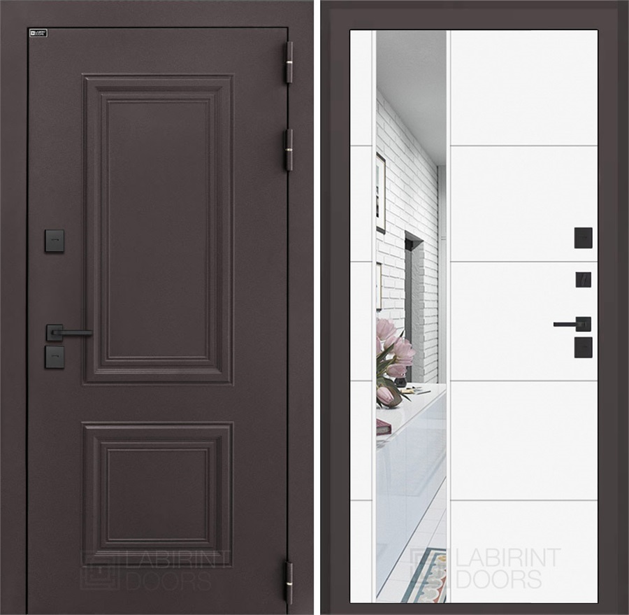 Комплектация уличной входной двери с терморазрывом Полярис Термо Лайт с зеркалом 19 (Муар коричневый / Белый софт):