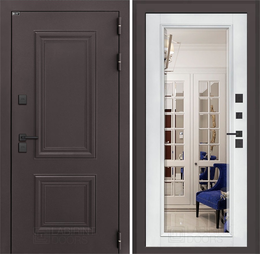 Комплектация уличной входной двери с терморазрывом Полярис Термо Лайт с зеркалом Фацет (Муар коричневый / Белый софт):