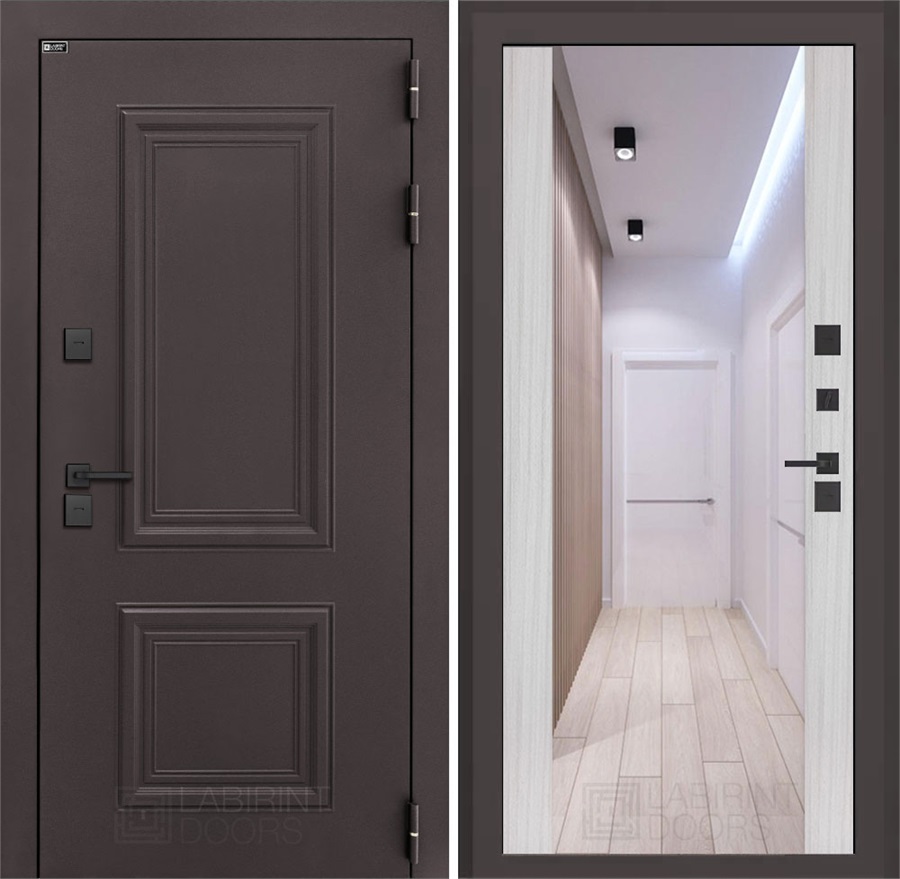 Комплектация уличной входной двери с терморазрывом Полярис Термо Лайт с зеркалом Максимум (Муар коричневый / Сандал белый):