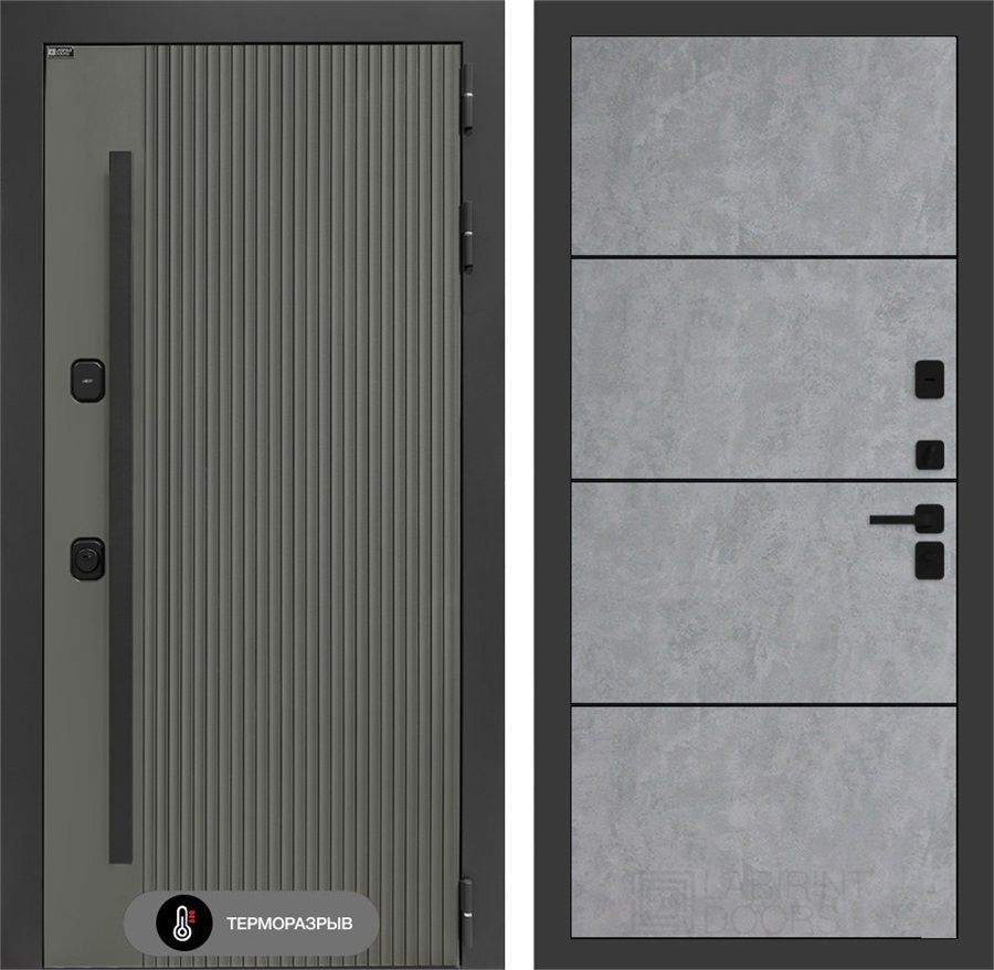 Комплектация входной двери с терморазрывом Термолаб 1 Тепло №25 - Бетон светлый, черный молдинг: