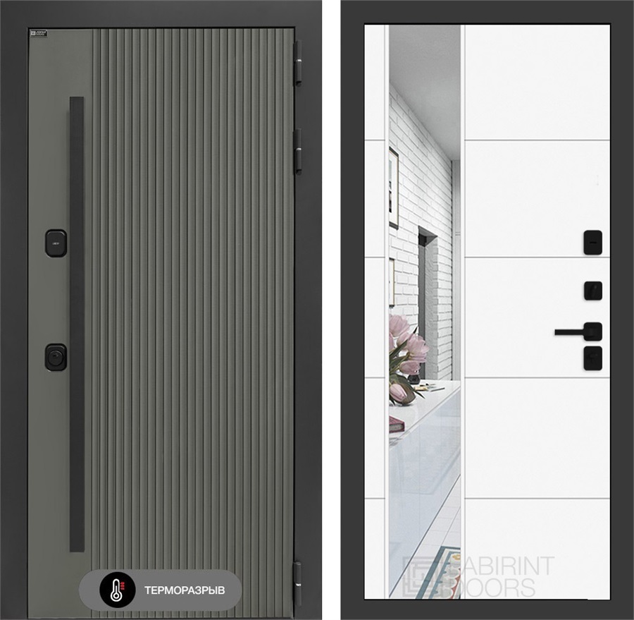 Комплектация входной двери с терморазрывом Термолаб 1 Тепло с зеркалом №19 - Белый софт: