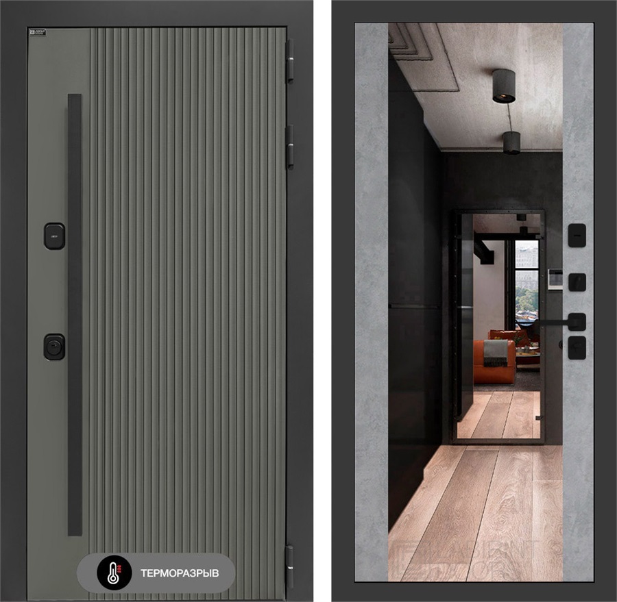 Комплектация входной двери с терморазрывом Термолаб 1 Тепло с зеркалом Максимум - Бетон светлый: