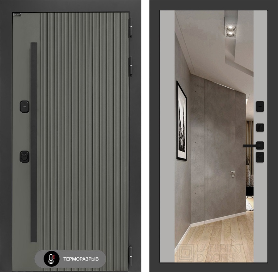 Комплектация входной двери с терморазрывом Термолаб 1 Тепло с зеркалом Максимум - Грей софт: