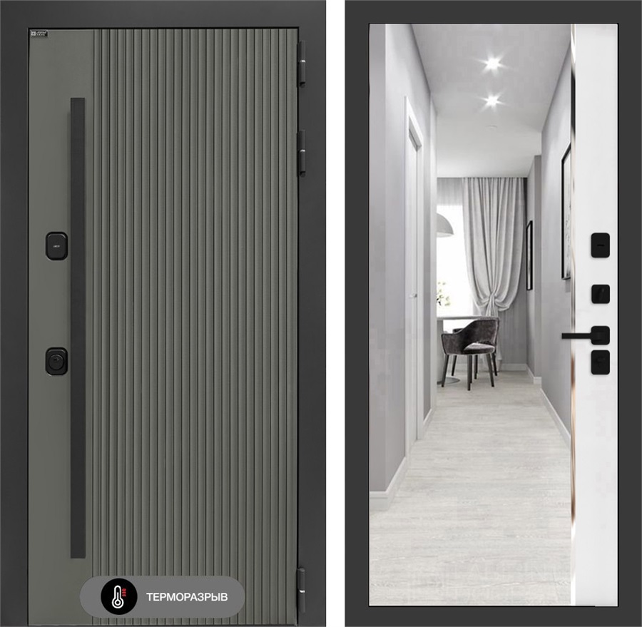 Комплектация входной двери с терморазрывом Термолаб 1 Тепло с зеркалом Панорама - Белый софт: