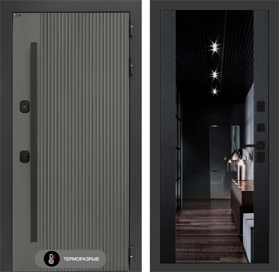 Комплектация входной двери с терморазрывом Термолаб 1 Тепло с тонированным зеркалом Максимум - Черный кварц: