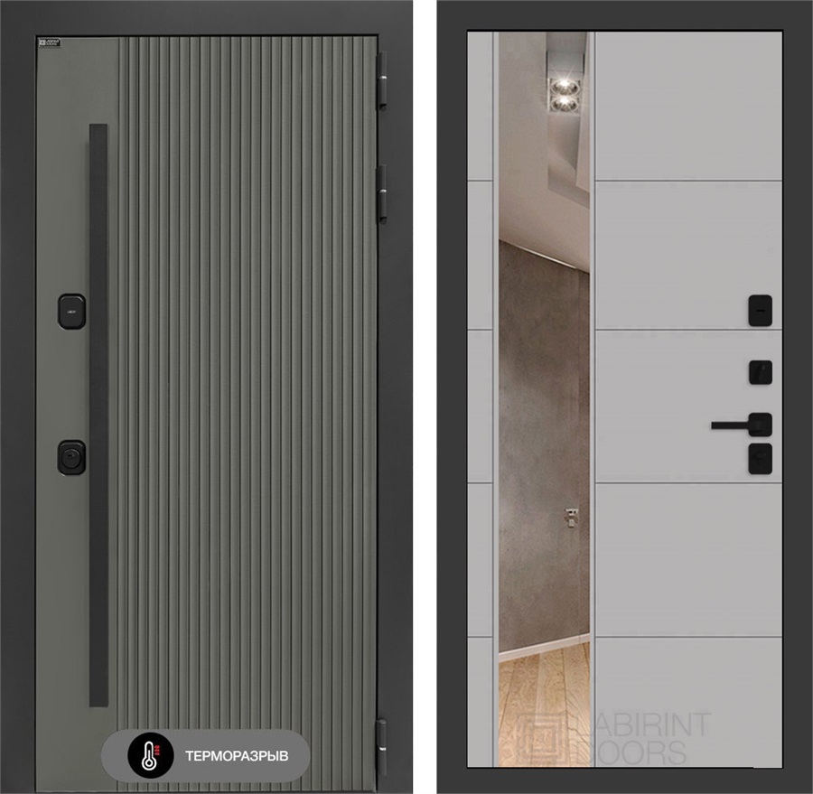 Комплектация входной двери с терморазрывом Термолаб 1 Тепло с зеркалом №19 - Грей софт: