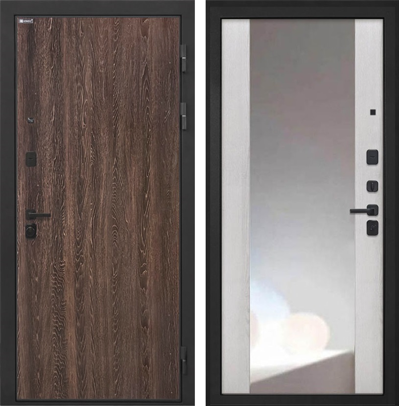 Входная дверь Профит Black зеркало ФЛЗ-516 (Дуб филадельфия коньяк / Сосна белая) для установки в квартиру