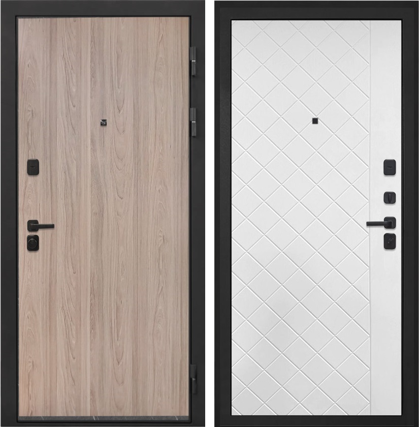 Входная дверь Профит Black ФЛ-Ромбы (Ильм американский / Силк ясень белый) для установки в квартиру
