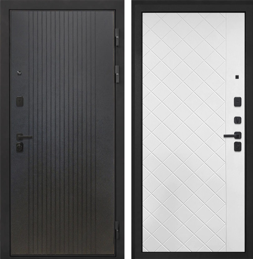 Комплектация входной двери Профит Black ФЛ-Ромбы (Лофт черный / Силк ясень белый):