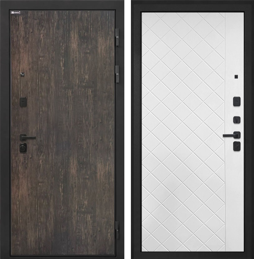 Входная дверь Профит Black ФЛ-Ромбы (Тиковое дерево / Силк ясень белый) для установки в квартиру