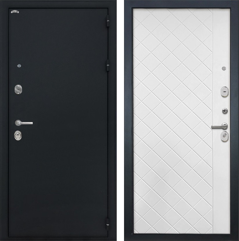 Входная дверь Греция ФЛ-Ромбы (Чёрный шелк / Силк ясень белый) для установки в квартиру