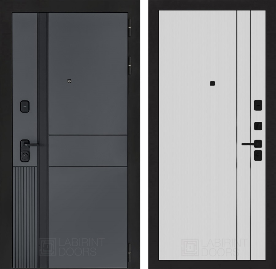 Комплектация входной двери Эволаб 10 - Белый рельеф софт, черные молдинги: