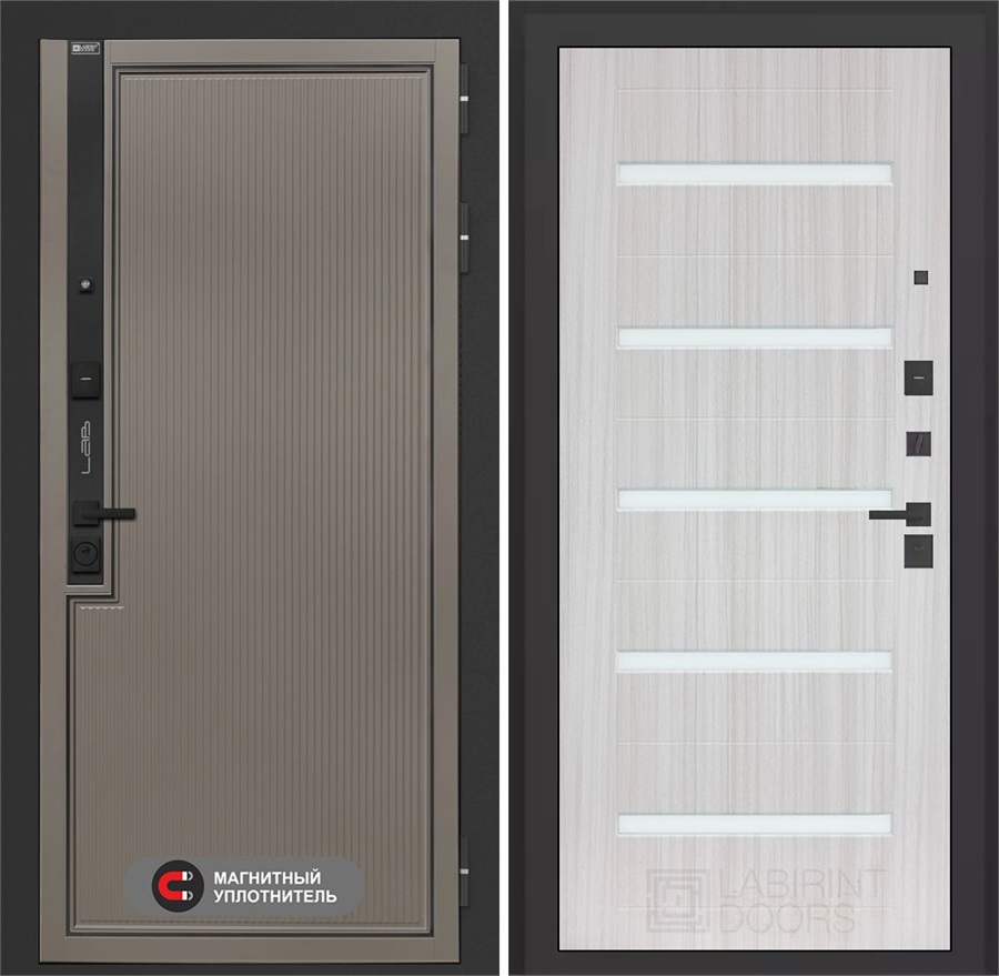 Входная дверь Лаб 1 Про - 01 Сандал белый, стекло белое для установки в квартиру