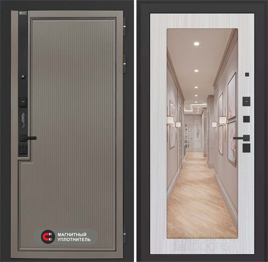 Входная дверь Лаб 1 Про с зеркалом 18 - Сандал белый для установки в квартиру