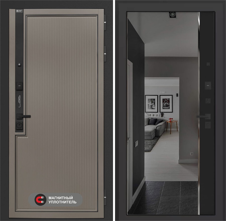 Комплектация входной двери Лаб 1 Про с тонированным зеркалом Панорама - Черный кварц: