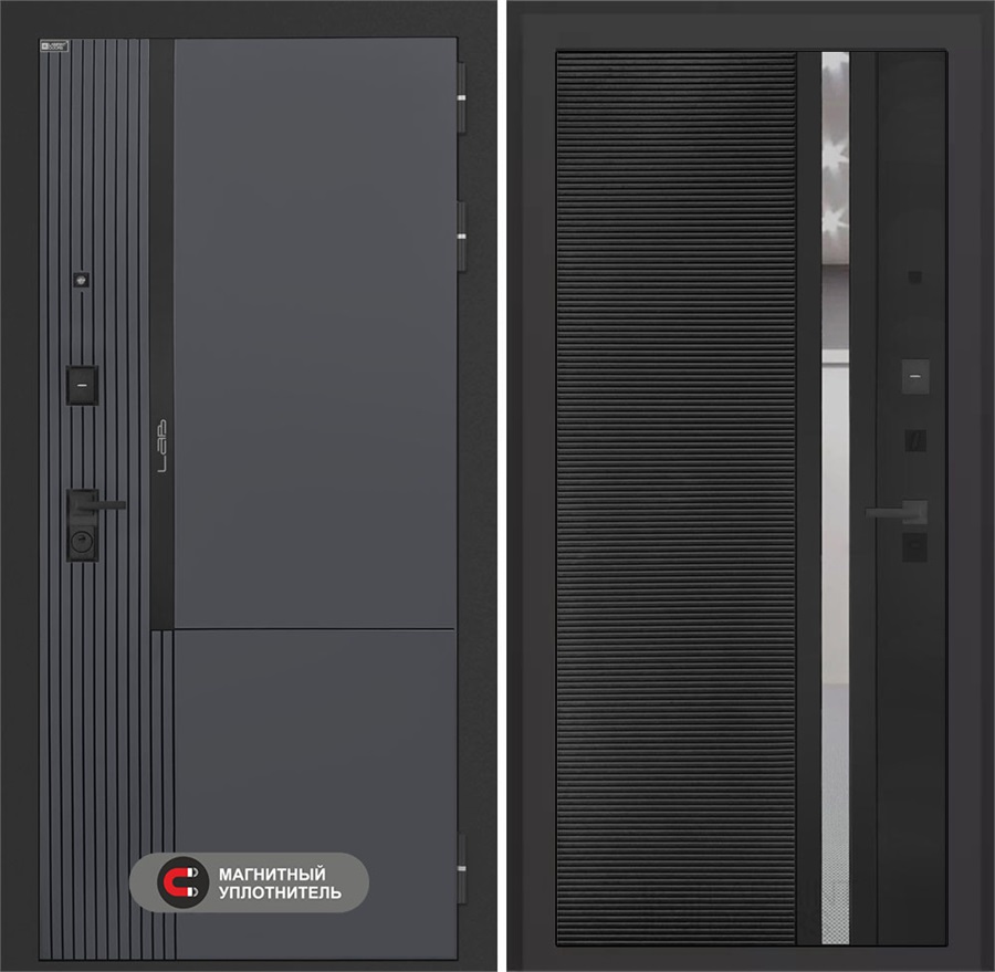 Входная дверь Лаб 2 Про - 31 Черный кварц, зеркальная вставка с тонировкой для установки в квартиру
