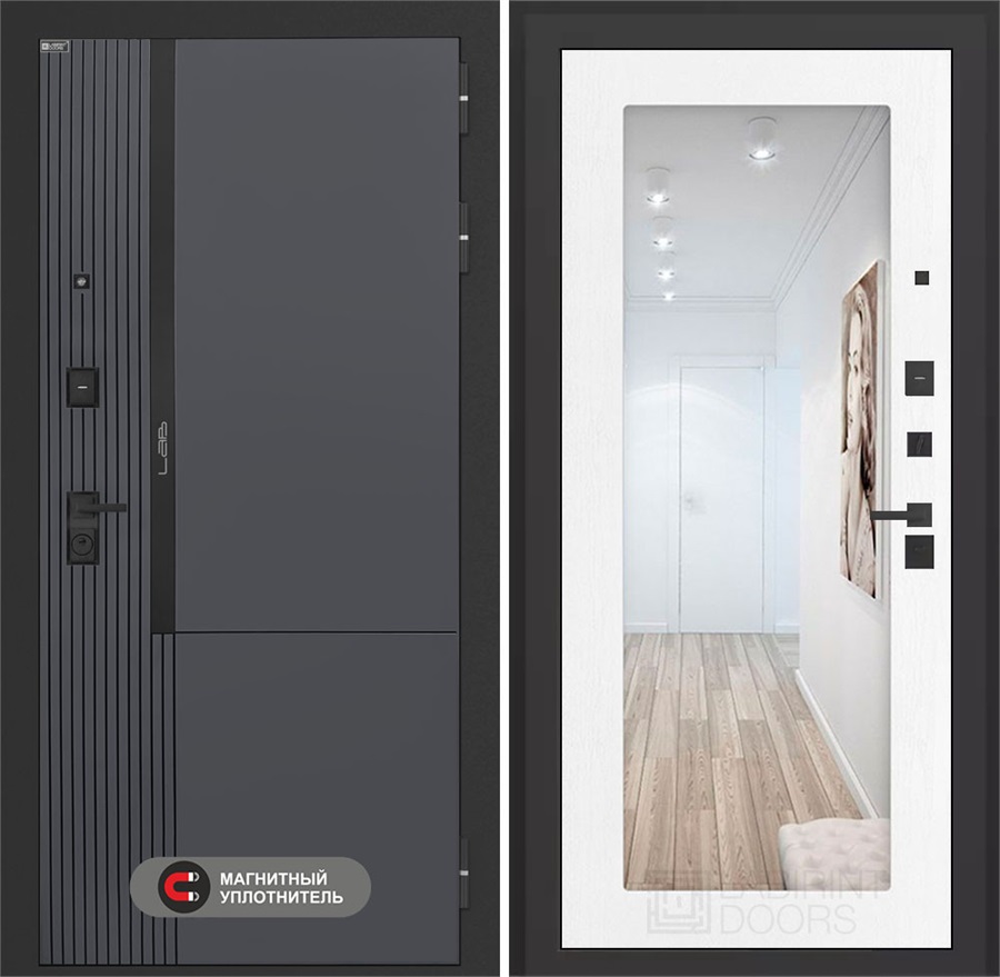 Комплектация входной двери Лаб 2 Про с зеркалом 18 - Белое дерево: