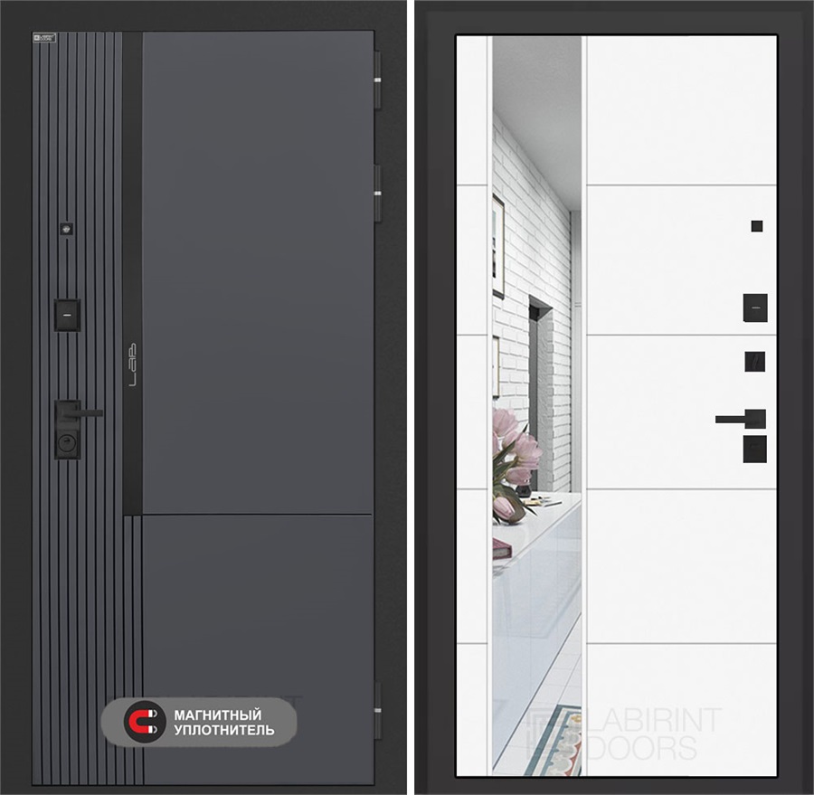 Входная дверь Лаб 2 Про с зеркалом 19 - Белый софт для установки в квартиру