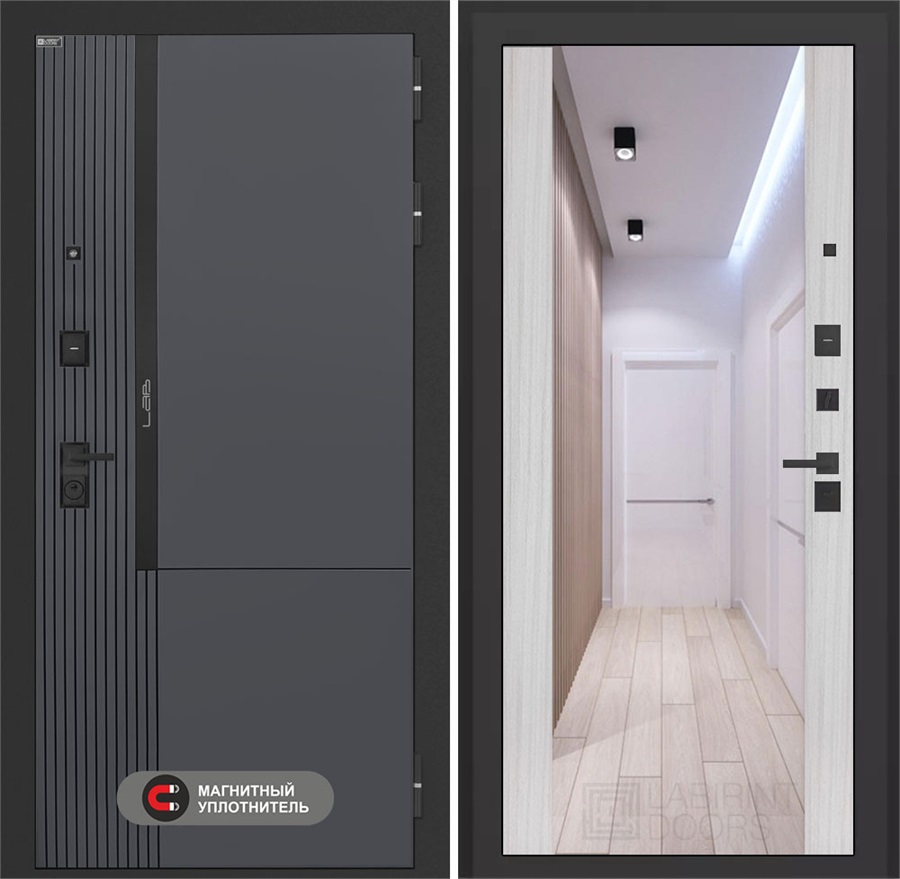 Входная дверь Лаб 2 Про с зеркалом Максимум - Сандал белый для установки в квартиру
