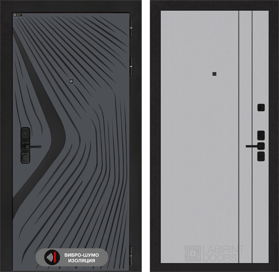 Входная дверь Леолаб 10 - Серый рельеф софт, черные молдинги для установки в квартиру