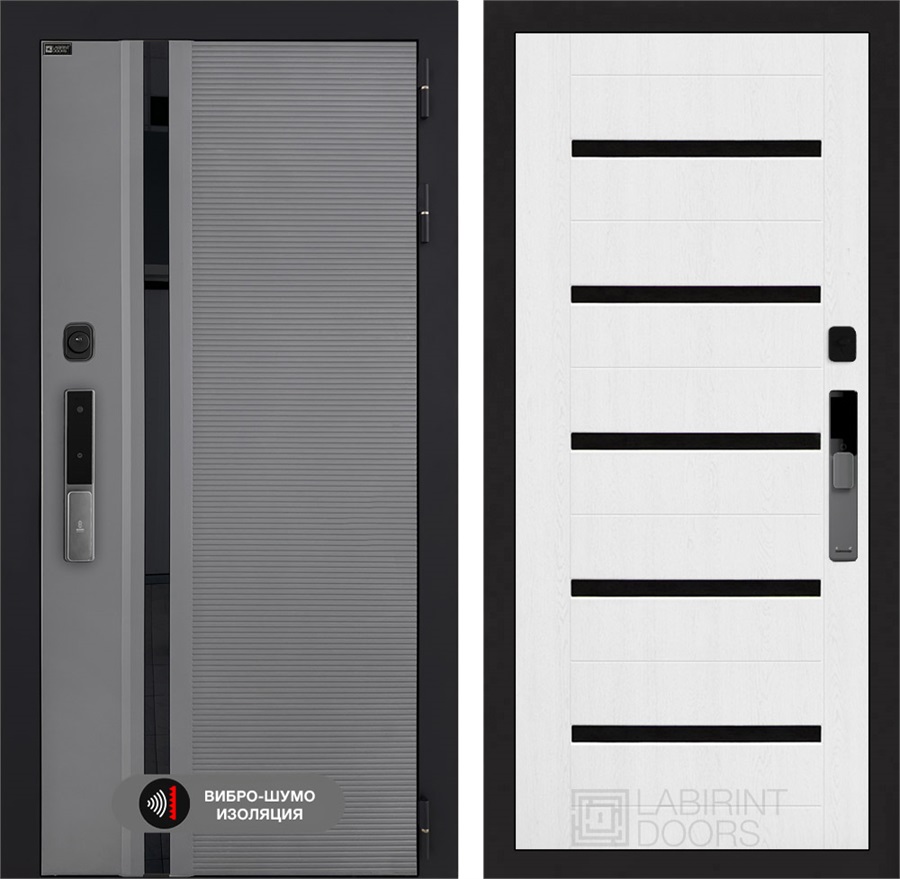 Входная дверь Piano Smart с умным замком - 01 Белое дерево, стекло черное для установки в квартиру