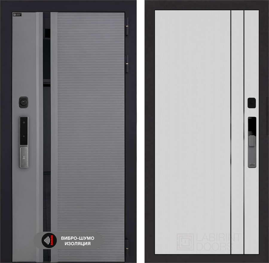 Входная дверь Пиано Смарт 2.0 с умным замком - 10 Белый рельеф софт, черный молдинг для установки в квартиру