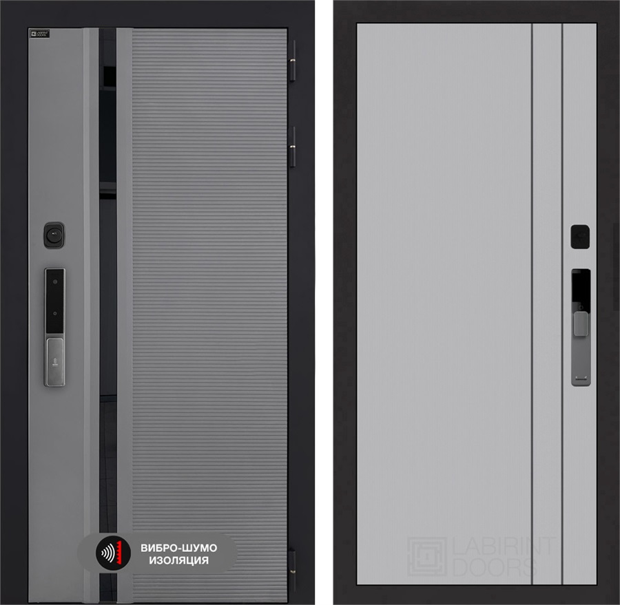 Входная дверь Пиано Смарт 2.0 с умным замком - 10 Серый рельеф софт, черный молдинг для установки в квартиру