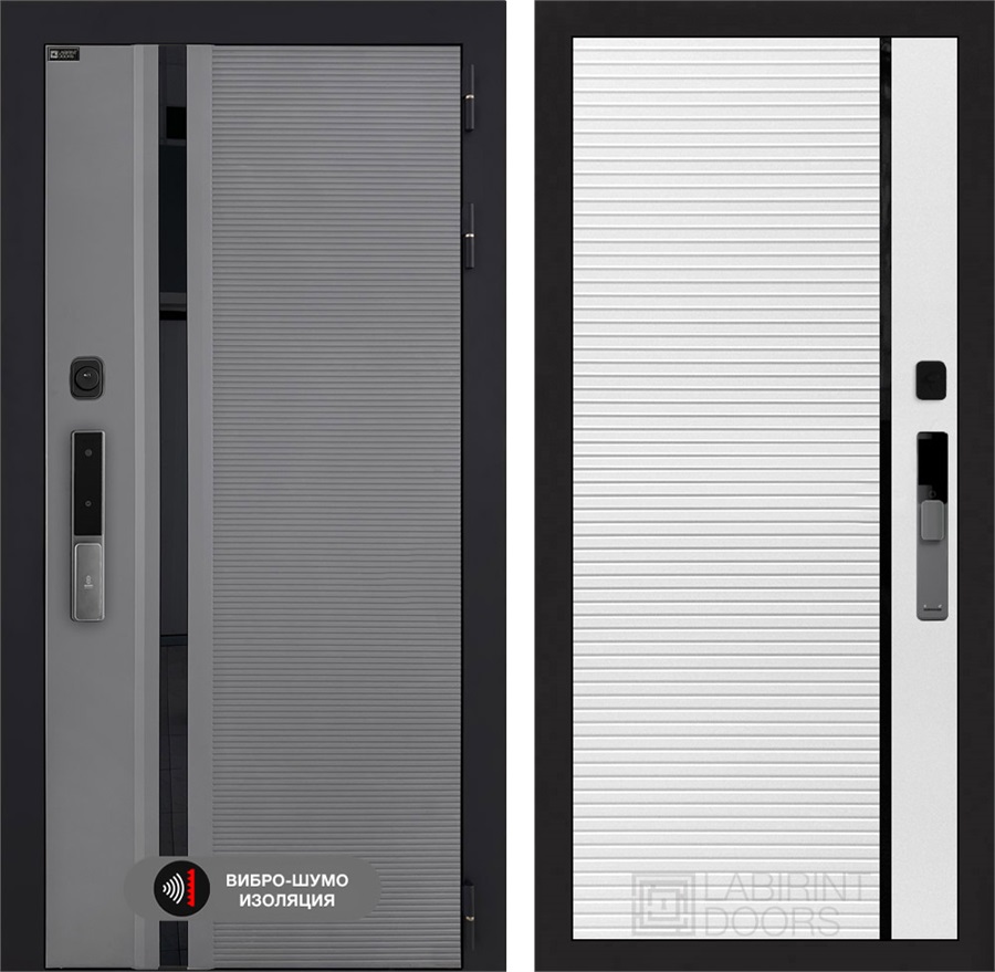 Входная дверь Piano Smart с умным замком - 22 Белый софт, черная вставка для установки в квартиру
