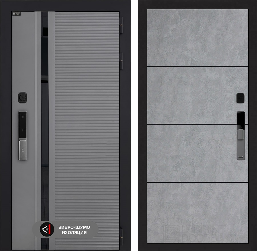 Входная дверь Piano Smart с умным замком - 25 Бетон светлый, черный молдинг для установки в квартиру