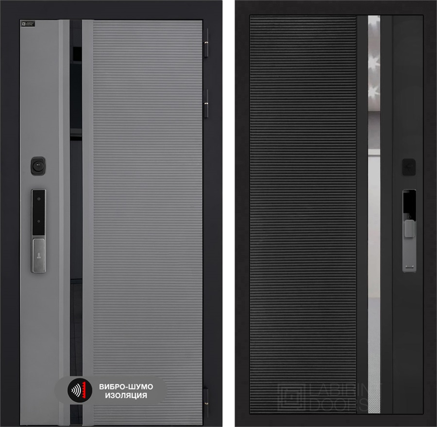 Входная дверь Piano Smart с умным замком - 31 Черный кварц, зеркальная вставка с тонировкой для установки в квартиру