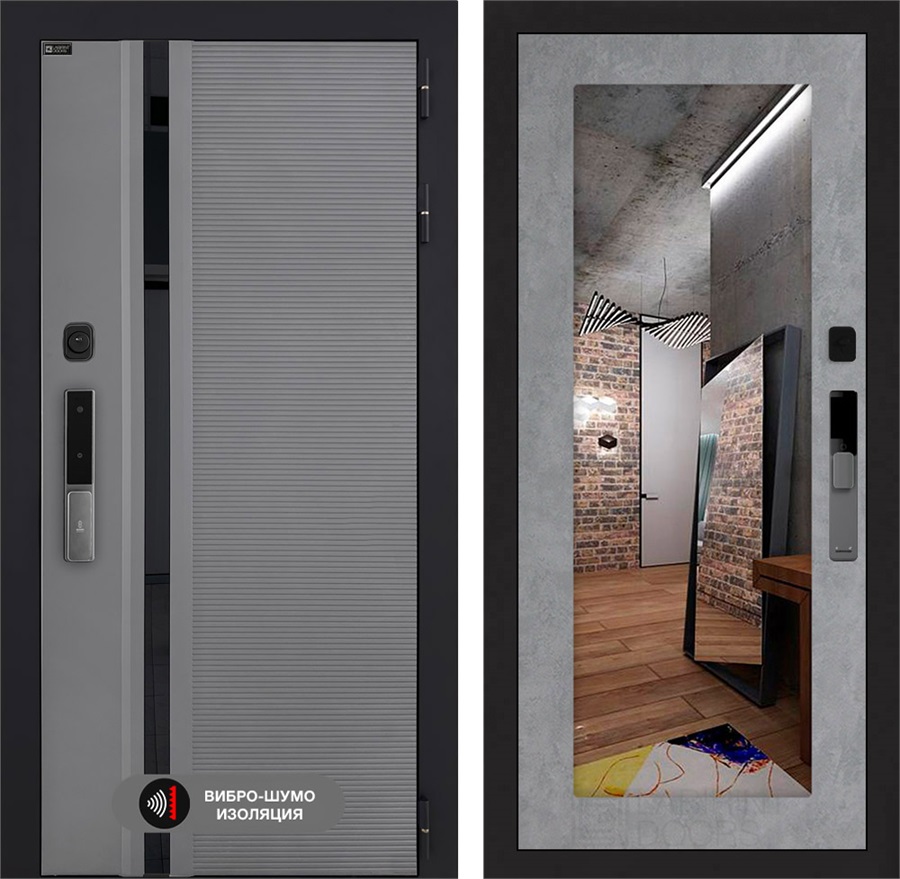 Входная дверь Piano Smart с умным замком - Зеркало 18 Бетон светлый для установки в квартиру