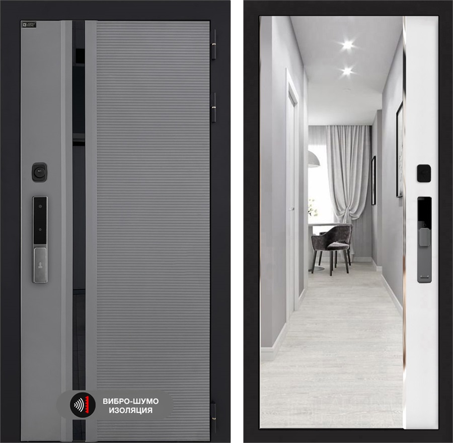 Входная дверь Piano Smart с умным замком - Зеркало Панорама Белый софт для установки в квартиру