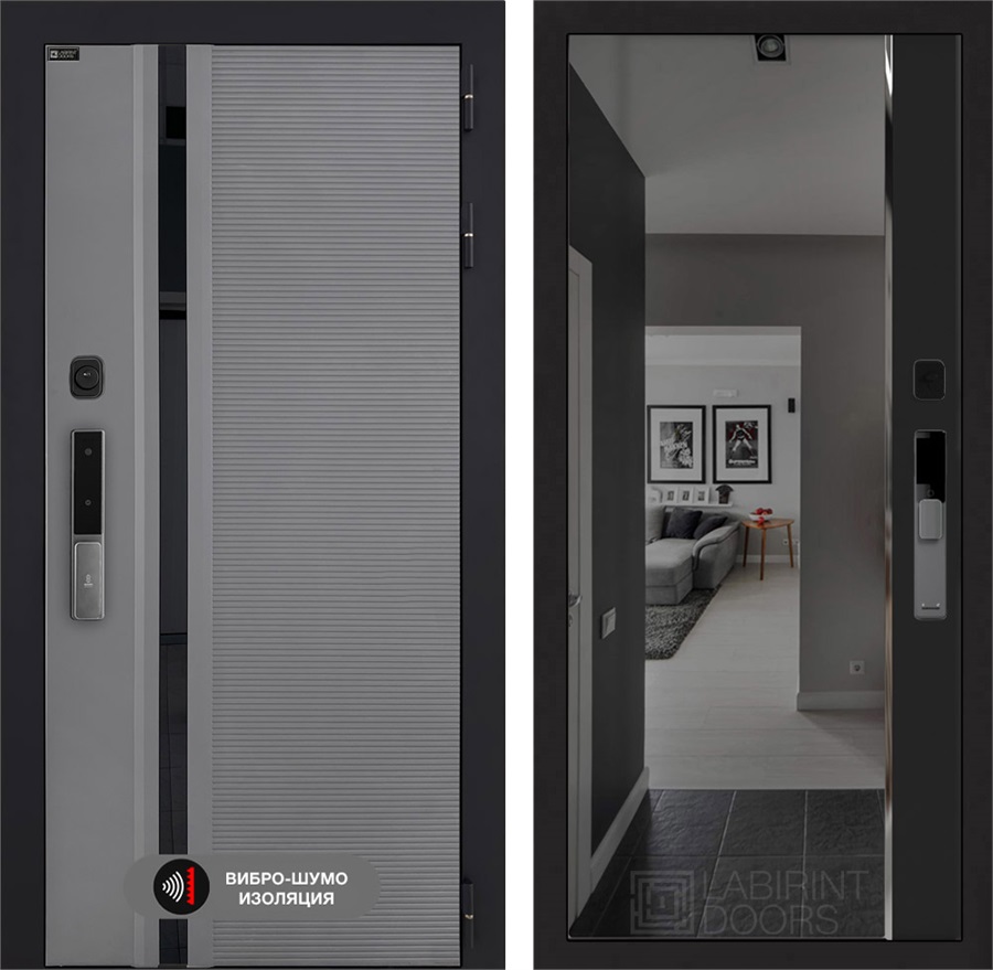 Входная дверь Piano Smart с умным замком - Зеркало с тонировкой Панорама Черный кварц для установки в квартиру