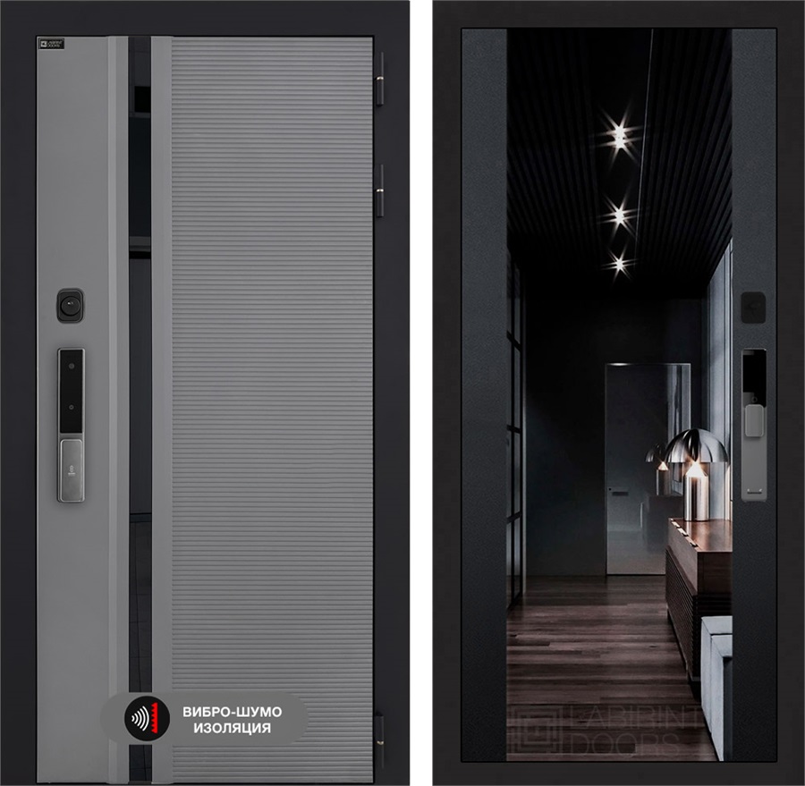 Входная дверь Piano Smart с умным замком - Зеркало тонированное Максимум Черный кварц для установки в квартиру