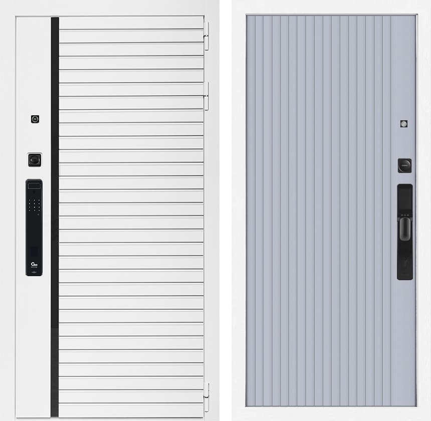 Комплектация входной двери Урбан Лайн Белая с умным замком - Вертикаль Силк маус: