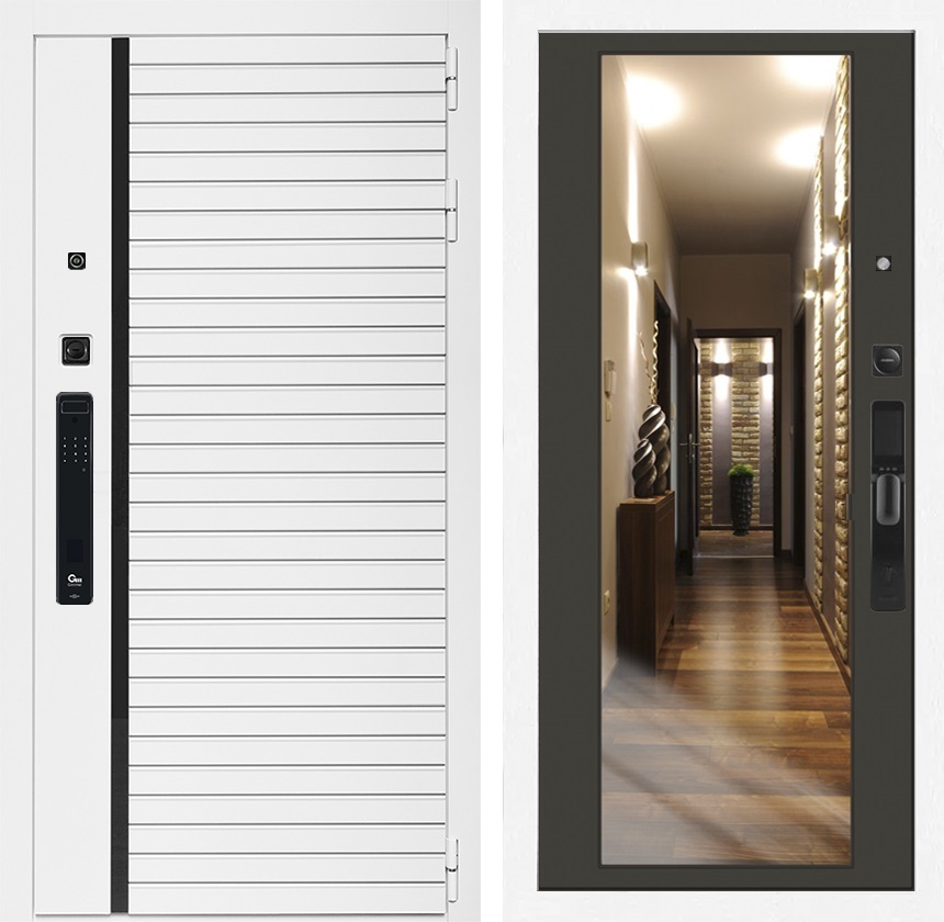 Входная дверь Урбан Лайн Белая с умным замком - Зеркало 2XL Венге для установки в квартиру