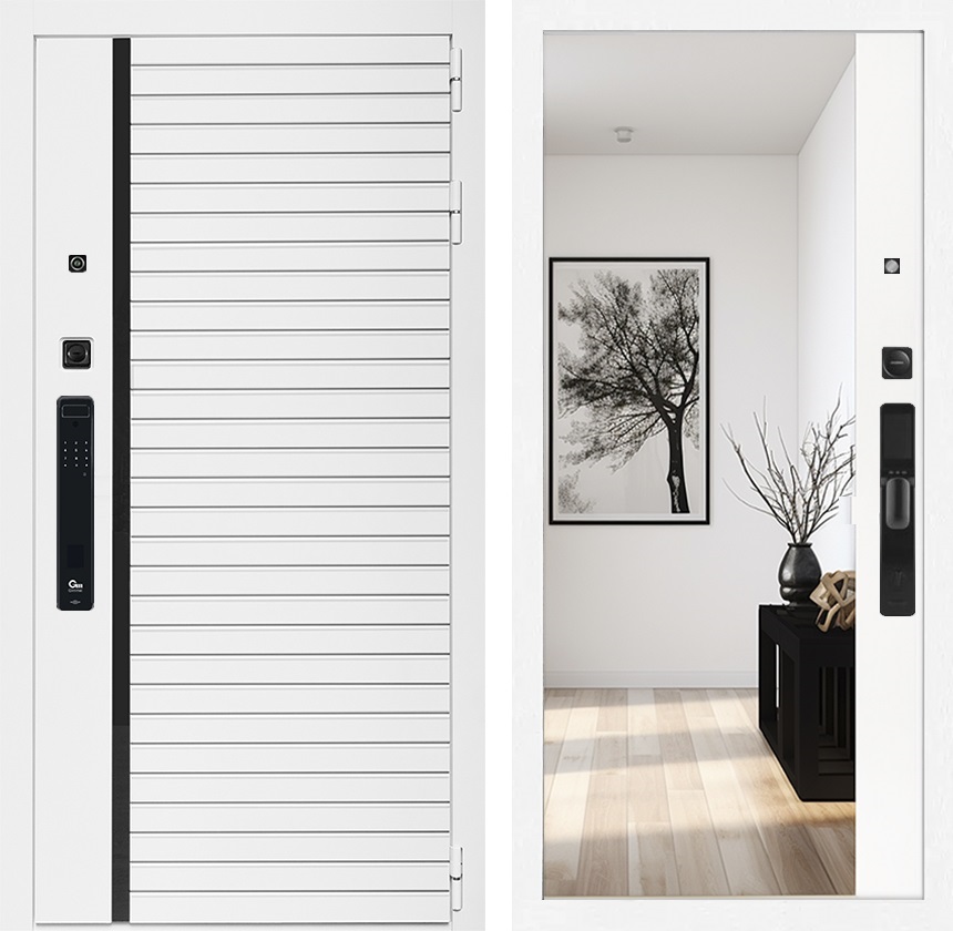 Входная дверь Урбан Лайн Белая с умным замком - Зеркало Панорама Белый матовый для установки в квартиру