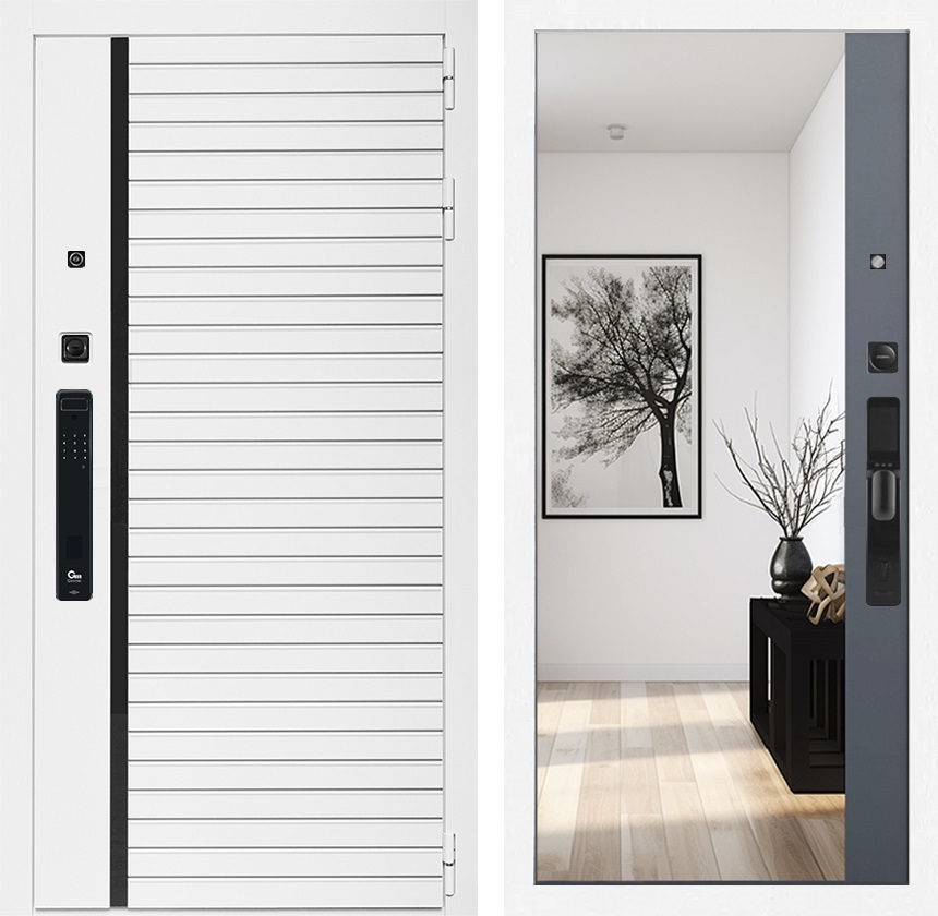 Входная дверь Урбан Лайн Белая с умным замком - Зеркало Панорама Графит софт для установки в квартиру
