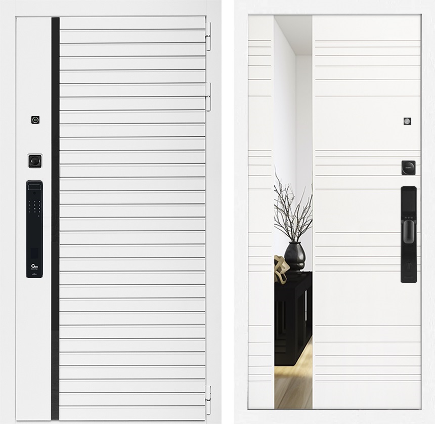 Входная дверь Урбан Лайн Белая с умным замком - Зеркало Сити Белый матовый для установки в квартиру