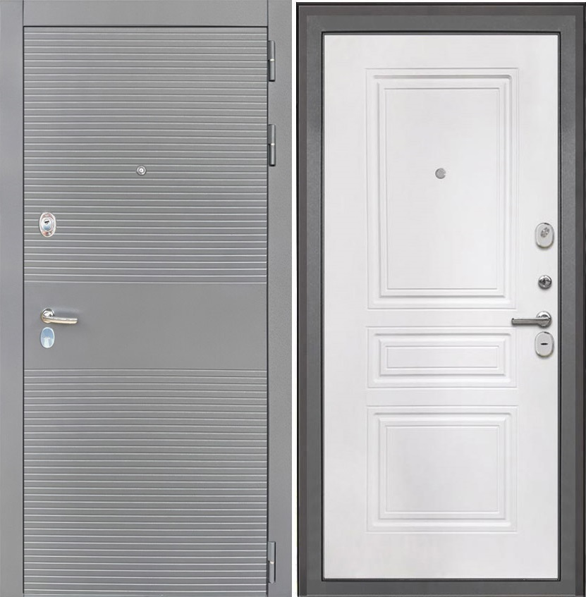 Входная дверь Брайтон Антрацит Грей / ФЛ-243 Белый матовый для установки в квартиру