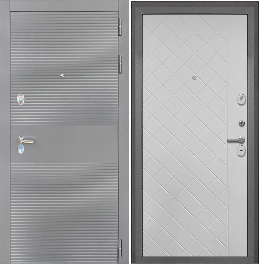 Входная дверь Брайтон Антрацит Грей / ФЛ-Ромбы Силк ясень белый установки в квартиру