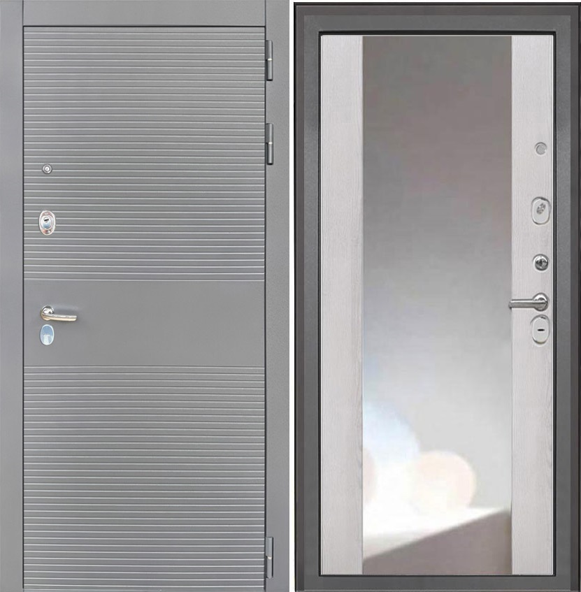 Входная дверь Брайтон Антрацит Грей / Зеркало ФЛЗ-156 Сосна белая для установки в квартиру